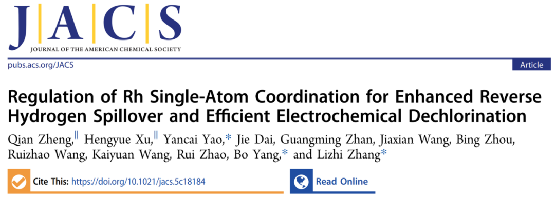 Regulation of Rh Single-Atom Coordination for Enhanced Reverse Hydrogen Spillover and Efficient Electrochemical Dechlorination. J. Am. Chem. Soc. 2025, doi.org/10.1021/jacs.5c18184.