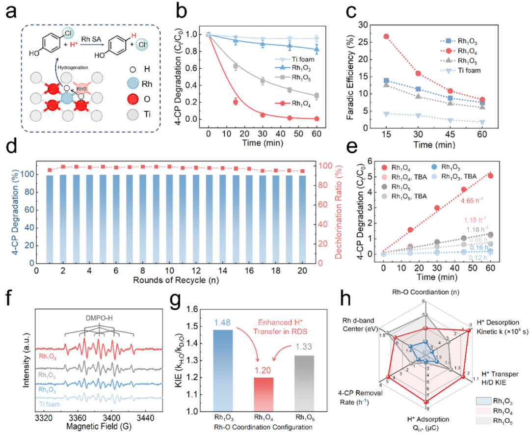 图5 钛基Rh单原子电极4-CP还原活性和脱氯机理