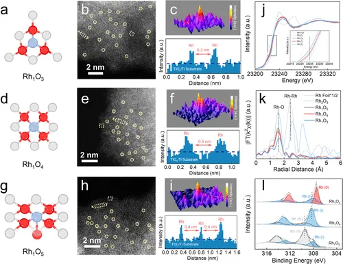 成功合成并表征了具有明确Rh–O配位(3, 4, 5)的Rh单原子催化剂(Rh₁O₃, Rh₁O₄, Rh₁O₅)。