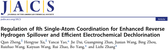 Regulation of Rh Single-Atom Coordination for Enhanced Reverse Hydrogen Spillover and Efficient Electrochemical Dechlorination Journal of the American Chemical Society, 2025.